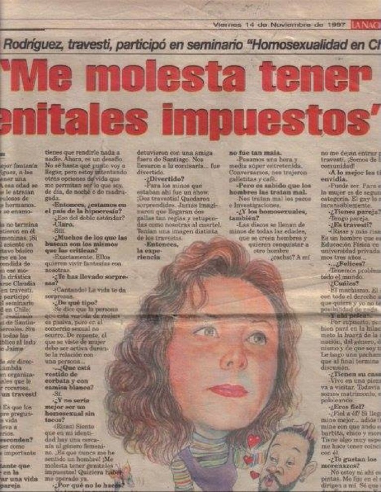 La esta, la artivista, performer y escritora travesti. La poeta. En 1991, finalizada la dictadura militar en Chile, Claudia participa en el Movimiento de Integración y Liberación Homosexual (Movilh), primera organización chilena de ese tipo. Se formó en derechos humanos, historia de la sexualidad y prevención del sida y otras ets.