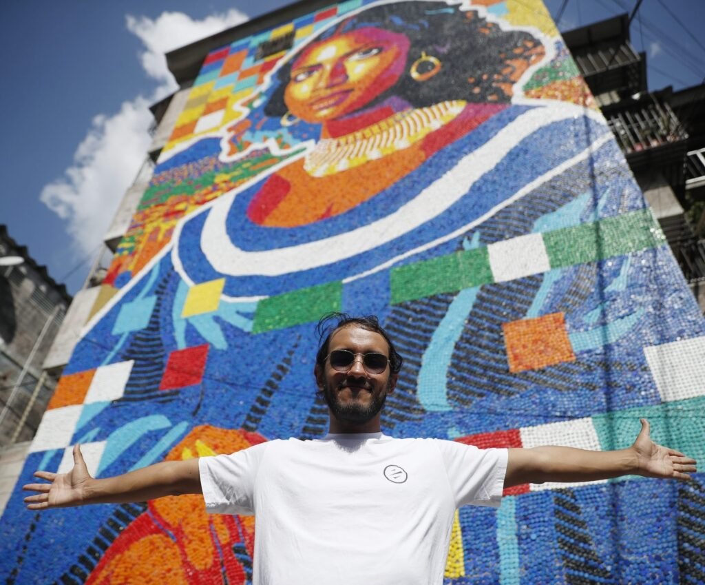 La obra de 13 metros de altura y siete metros de ancho representa «el mural más alto que hemos hecho, por lo tanto es el mural de tapas más alto del mundo», dijo en una conversación con EFE el joven artista caraqueño.